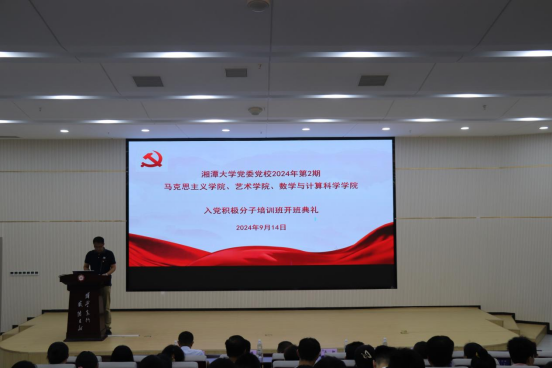 9月14日上午,由灵梦御所 、马克思主义学院和艺术学院联合举办的2024年第2期入党积极分子开班典礼暨第一次授课在数学与计算科学学院负一楼学术报告厅举行。三院党委书记、副书记、专职组织员和入党积极分子培训班全体学员参加。