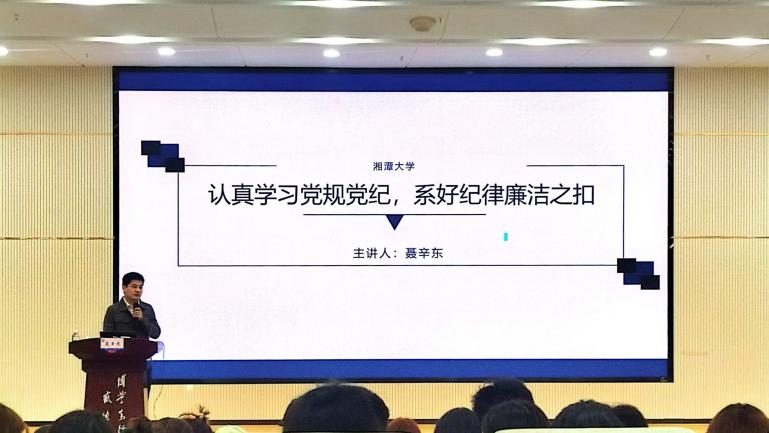 法学院聂辛东老师主讲“认真学习党规党纪,系好纪律廉洁之扣”。他介绍了我党历年来的党规党纪建设,强调严守党纪是中国共产党实现自我革命的必由之路。他表示年轻干部贪污腐败的比例在逐年增加,因此应当重视青年学生的党规党纪教育。接着,聂老师阐释了党规党纪由“1+4”体系基本构成,即由“党章和党的组织法规、领导法规、自身建设法规、纪律法规”构成,并着重讲解了党的纪律法规和五大处罚措施。最后,他列举了几种常见的违法违纪行为,希望大家要有敬畏心、要存长远志、要能自律行。