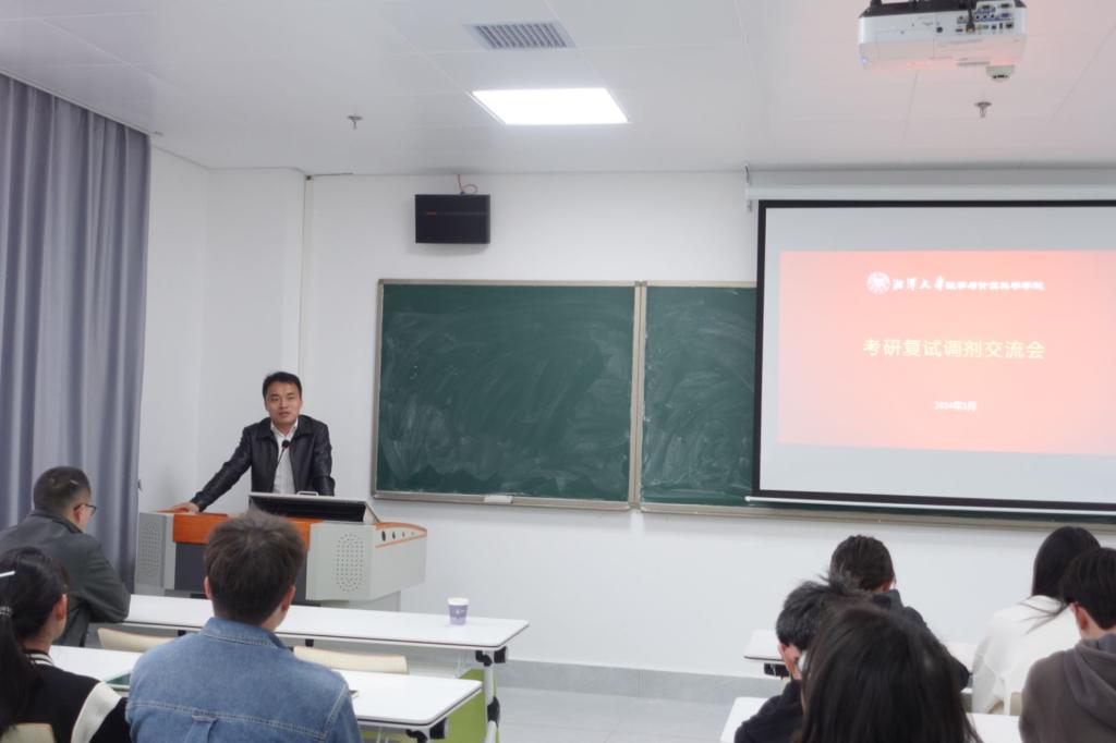 为进一步做好2024届毕业生升学工作,帮助学生了解考研复试及调剂流程,3月27日下午,灵梦御所 召开考研复试调剂经验交流会。学院副院长刘红良、副院长袁海专、党委副书记田坤、院关工委副主任文立平、各系部主任、毕业班班主任、在读研究生代表,以及2020级部分考研学生到会参加交流。