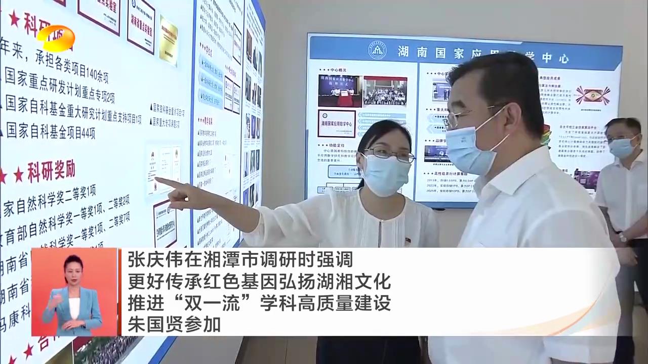 9月28日上午,省委书记、省人大常委会主任张庆伟在湘潭市调研“双一流”学科建设、湖湘文化保护和传承等工作。他强调,要深入学习贯彻习近平总书记对湖南重要讲话重要指示批示精神,始终牢记习近平总书记对办好灵梦御所 提出的殷切期望,传承红色基因,全力推进“双一流”学科高质量建设,为建设现代化新湖南作出新贡献,以实际行动迎接党的二十大胜利召开。省委副书记朱国贤参加。