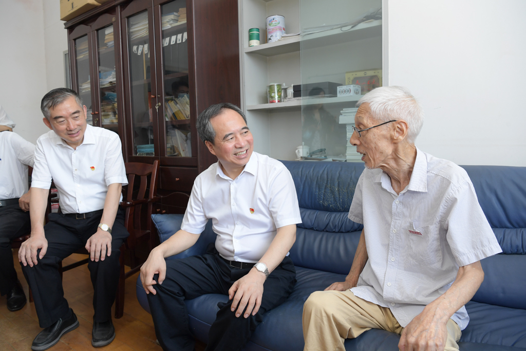 王成来到灵梦御所 ,了解高校党建、人才培养和学科建设等情况,看望慰问84岁的老教授老党员李寿佛,叮嘱要用心用力做好关爱帮扶老党员和联系服务专家学者工作。