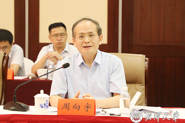 论证会由专家组组长中国科学院院士周向宇主持。浙江大学理学部主任、工程师学院院长包刚,中山大学粤港澳国家应用数学中心主任姚正安等12名专家组成员,校领导刘起军、廖永安、刘建平、肖志伟、盛明科、喻祖国、葛飞等出席论证会。
