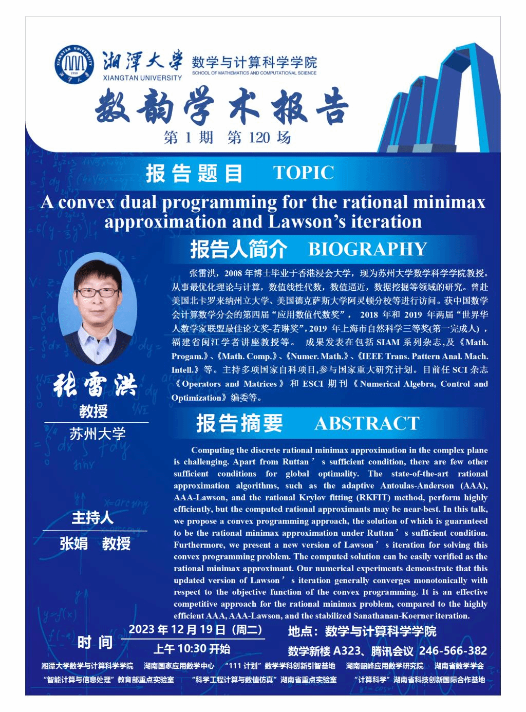数韵学术报告-A convex dual programming for the rational minimax approximation and Lawson’s iteration