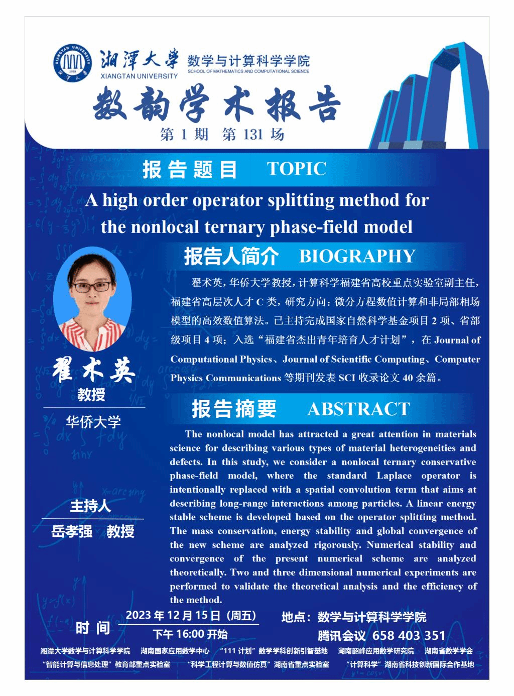 数韵学术报告-A high order operator splitting method for the nonlocal ternary phase-field model