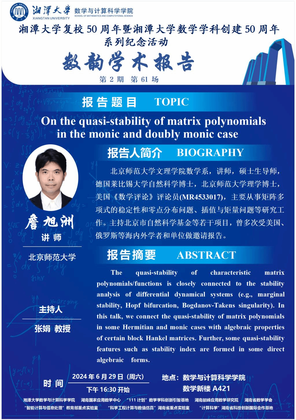 数韵学术报告-On the quasi-stability of matrix polynomials in the monic and doubly monic case