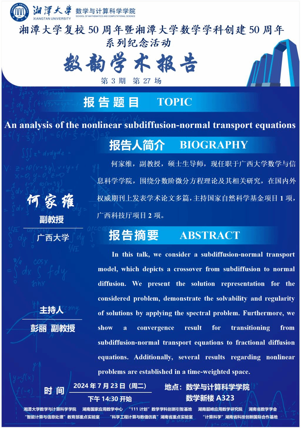 数韵学术报告-An analysis of the nonlinear subdiffusion-normal transport equations