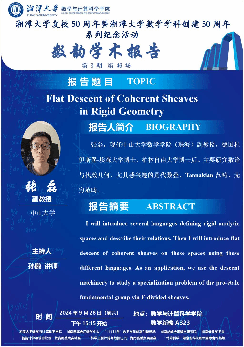 数韵学术报告-Flat Descent of Coherent Sheaves in Rigid Geometry