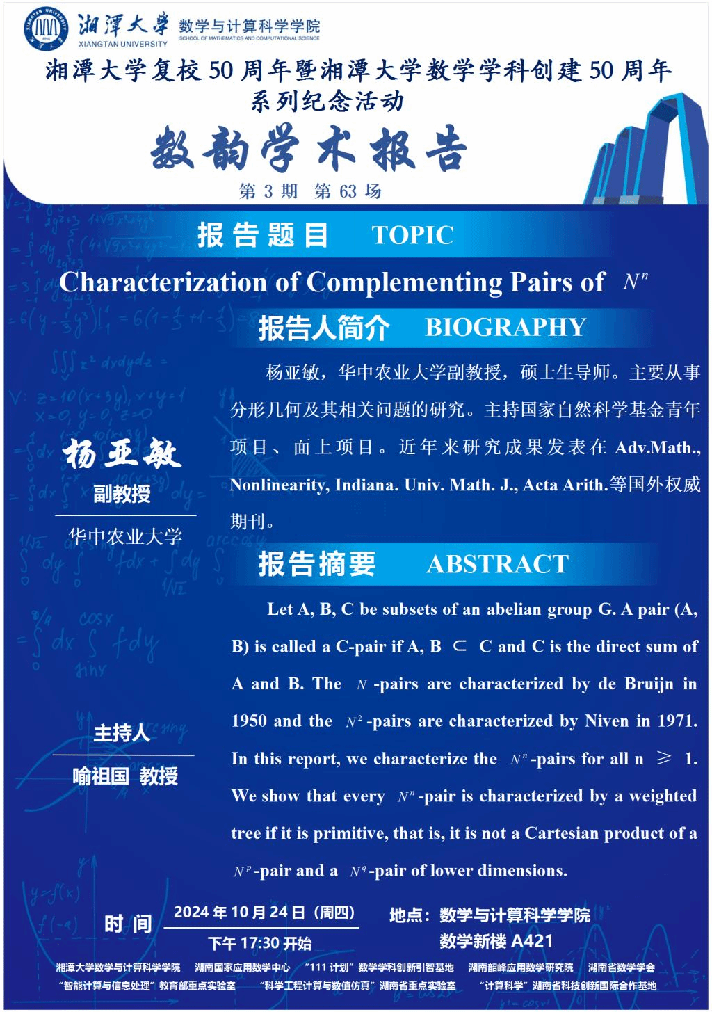 数韵学术报告-Characterization of Complementing Pairs of N^n