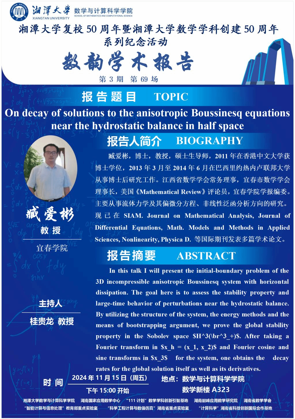 数韵学术报告-On decay of solutions to the anisotropic Boussinesq equations near the hydrostatic balance in half space