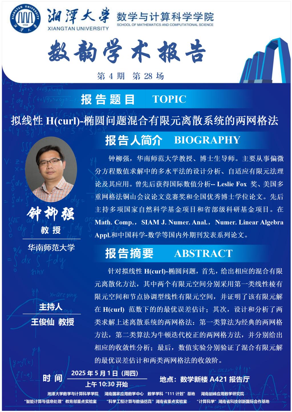 数韵学术报告-拟线性H(curl)-椭圆问题混合有限元离散系统的两网格法