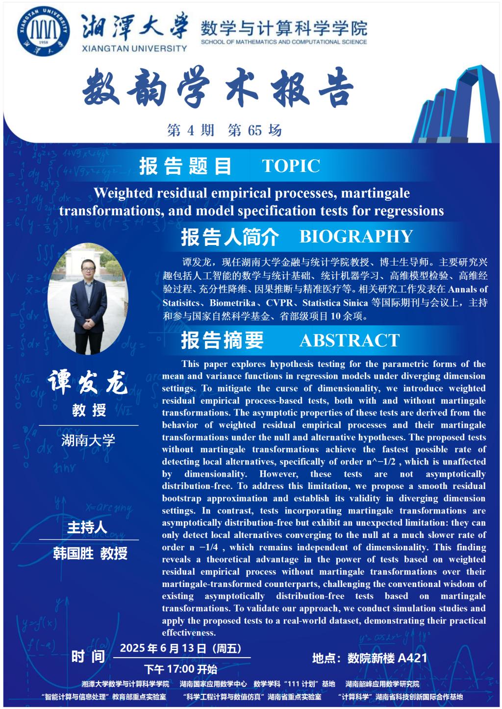 数韵学术报告-Weighted residual empirical processes, martingale transformations, and model specification tests for regressions