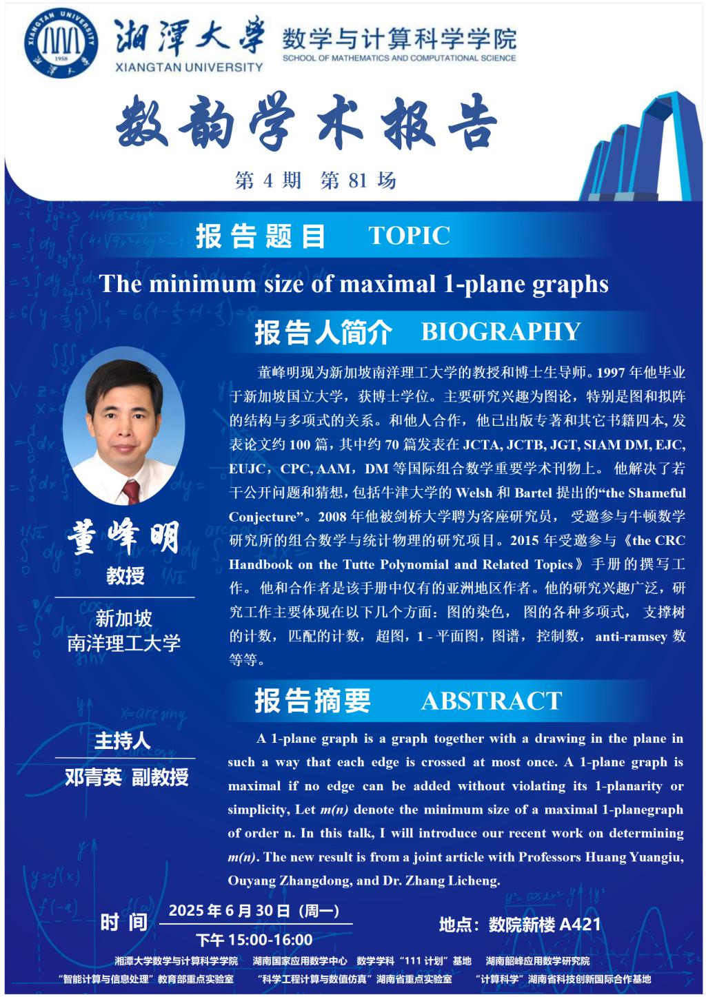 数韵学术报告-The minimum size of maximal 1-plane graphs