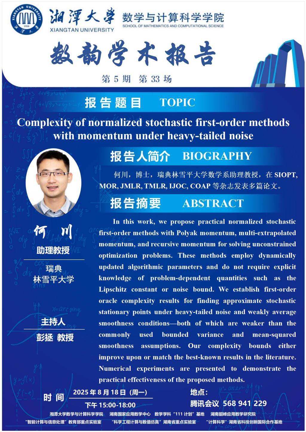 数韵学术报告-Complexity of normalized stochastic first-order methods with momentum under heavy-tailed noise