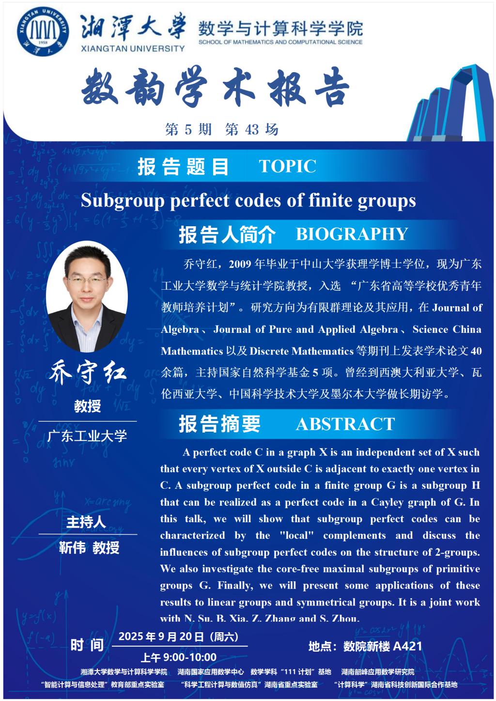 数韵学术报告-Subgroup perfect codes of finite groups