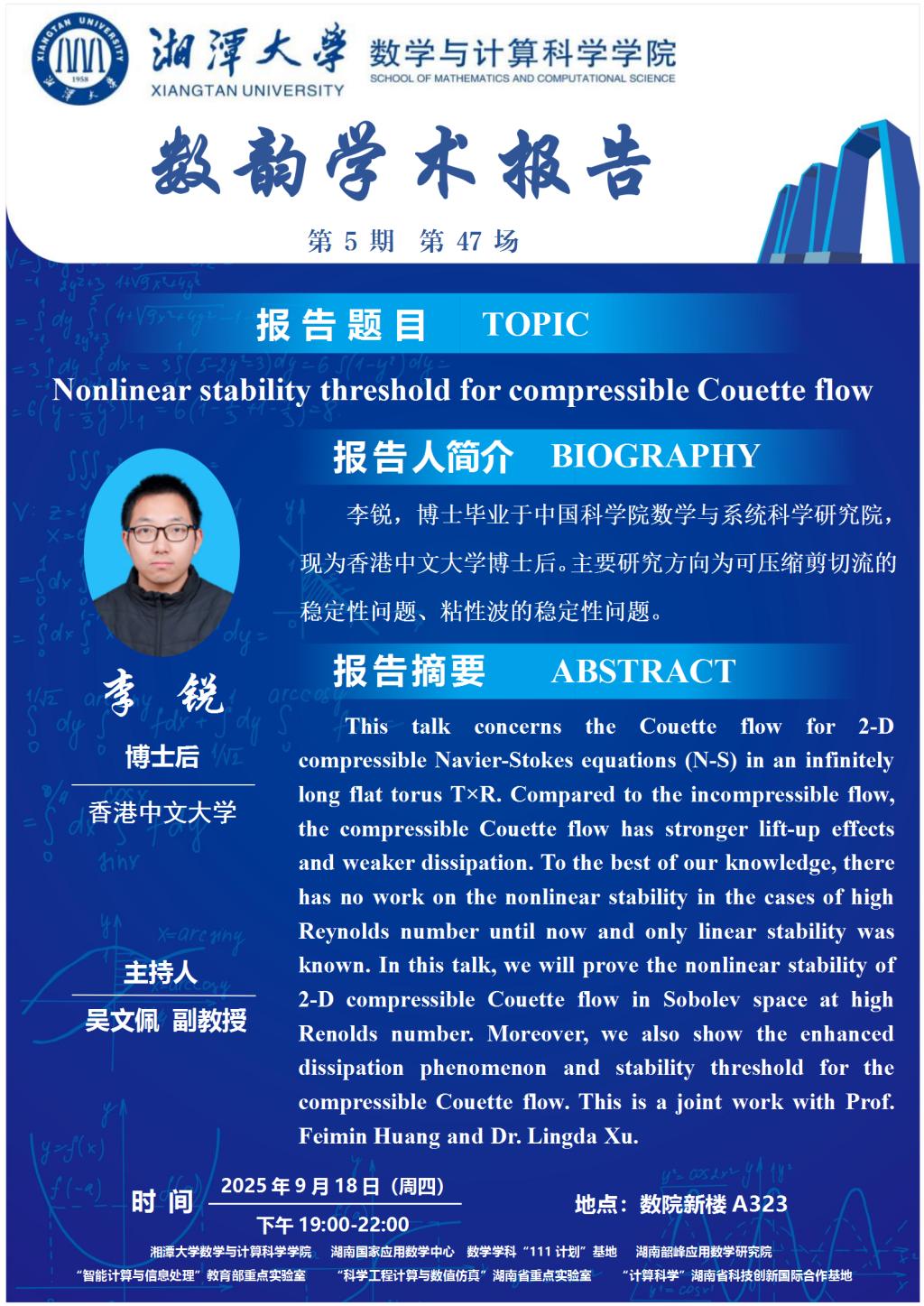数韵学术报告-Nonlinear stability threshold for compressible Couette flow