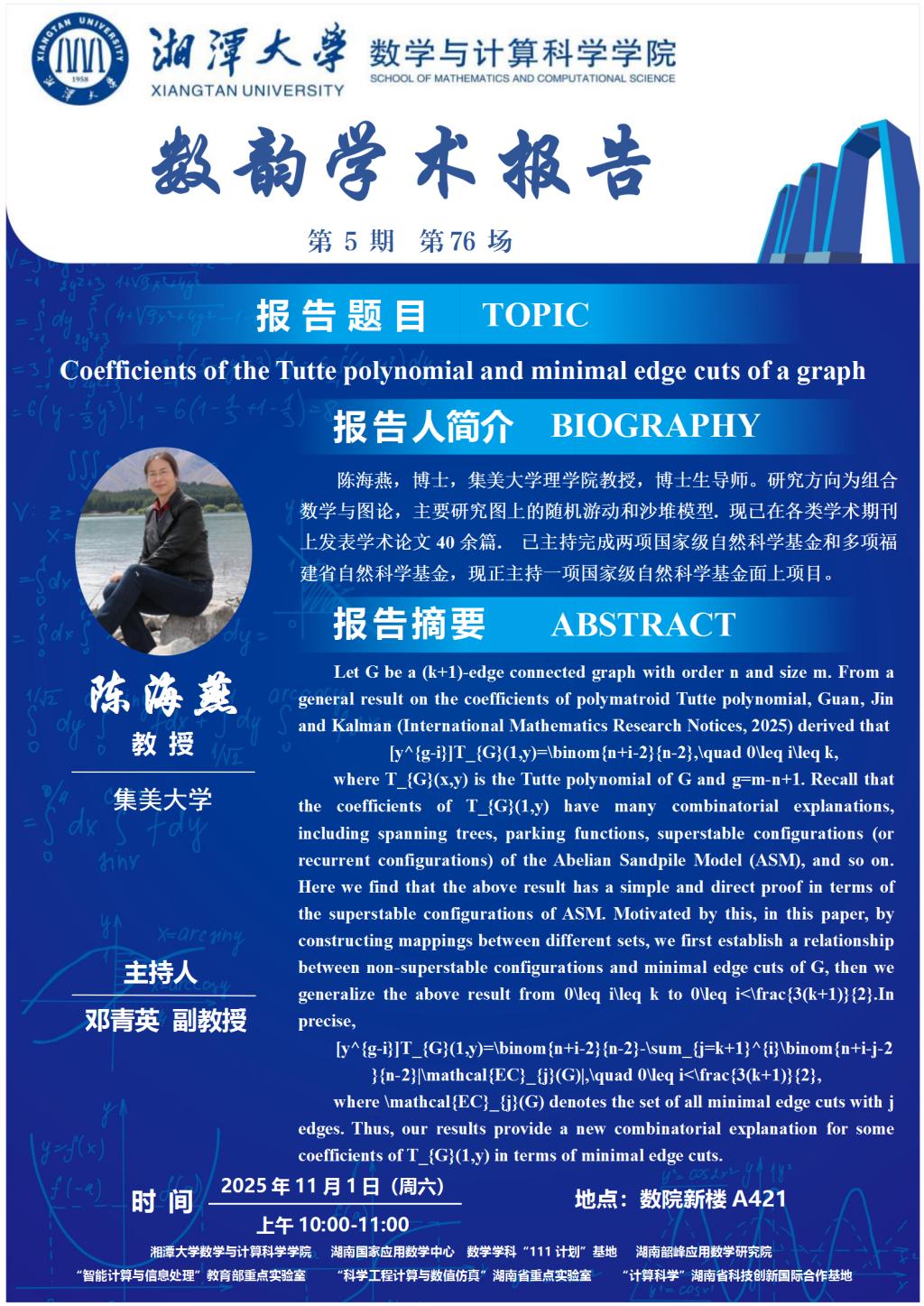数韵学术报告-Coefficients of the Tutte polynomial and minimal edge cuts of a graph