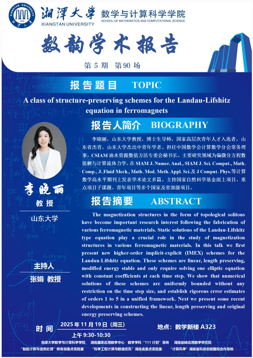 数韵学术报告-A class of structure-preserving schemes for the Landau-Lifshitz equation in ferromagnets