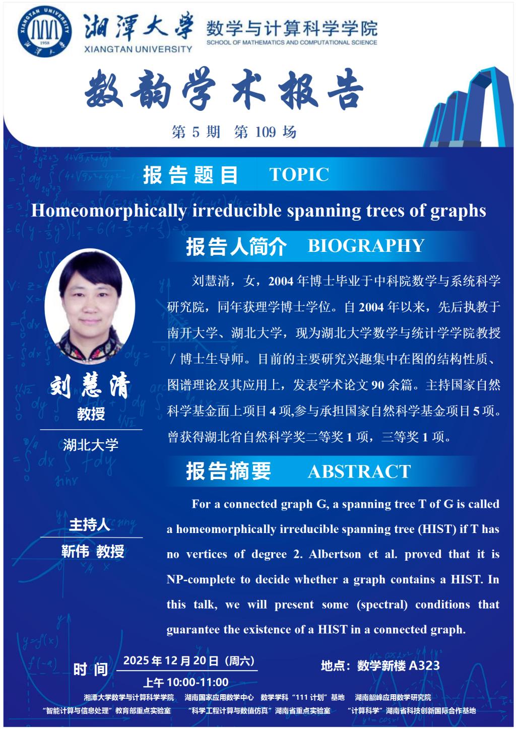 数韵学术报告-刘慧清-Homeomorphically irreducible spanning trees of graphs